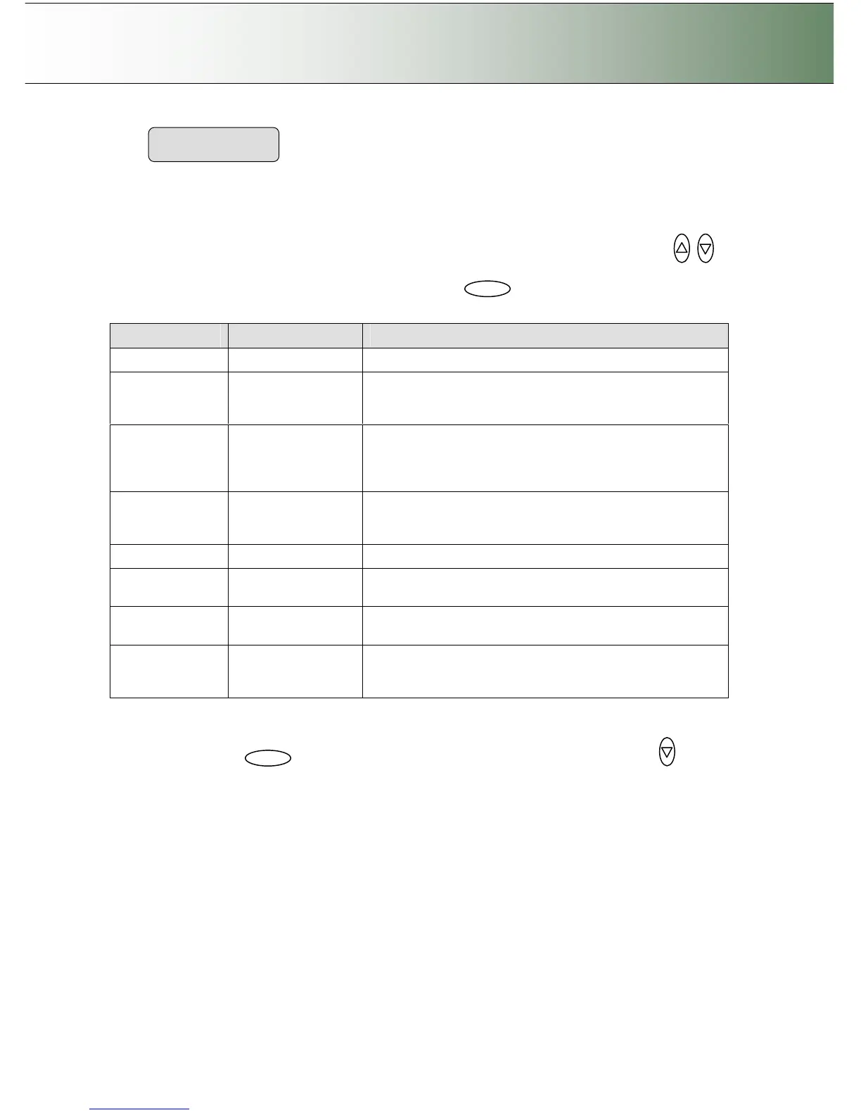 Here follows a short description of the parameter settings. Use the arrow button up or down