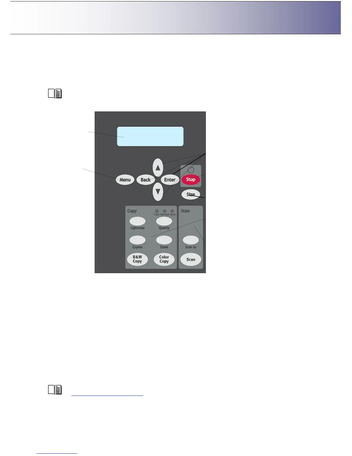 (and not from a PC and scanning software interface). The panel contains a display window, control
