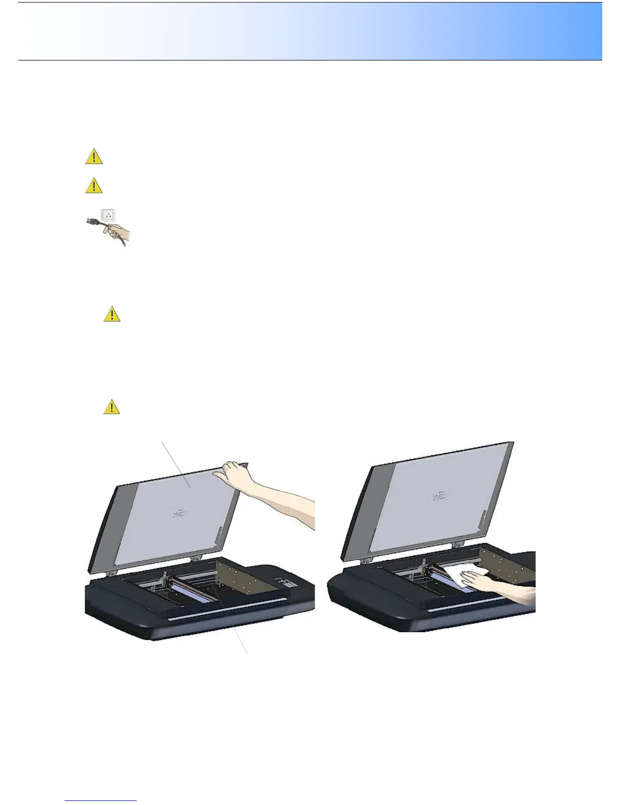 Caution: Before cleaning the scan area, be sure to turn the scanner power off and disconnect the