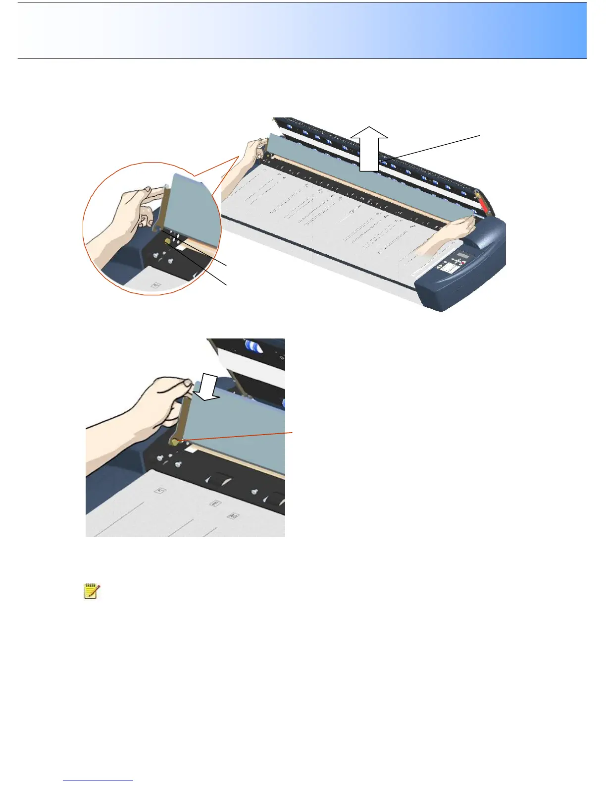 8. Each lever is attached to the scanner chassis with a small hook that rests on a round pin. As you hold
