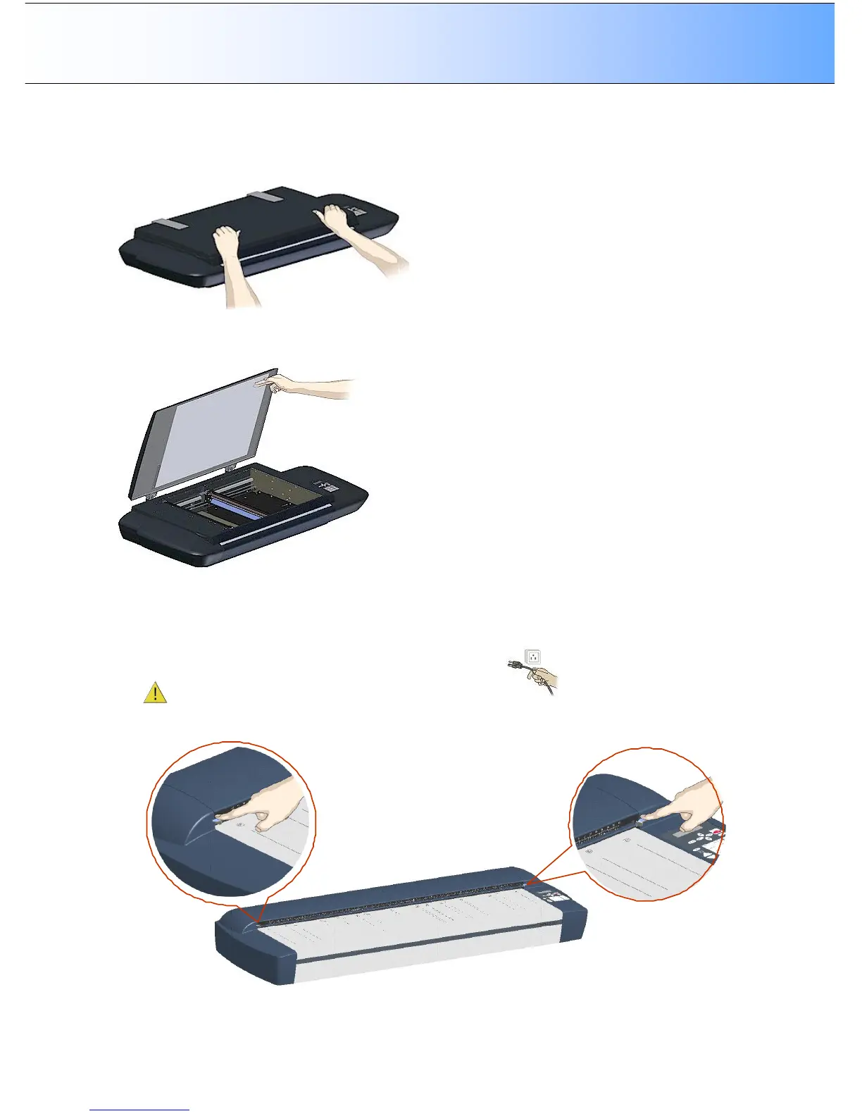 2. Open the scan area lid - Push down on the two lever buttons found near the insertion slot on each