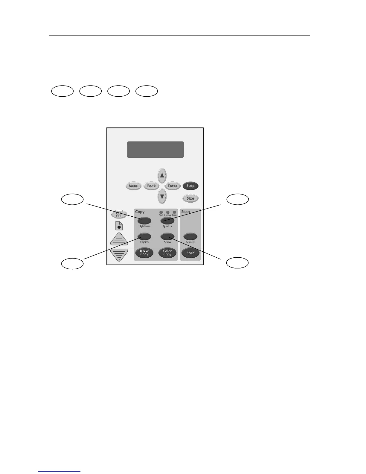 functions described in this section (copy image Lightness, copy Quality, number of Copies and