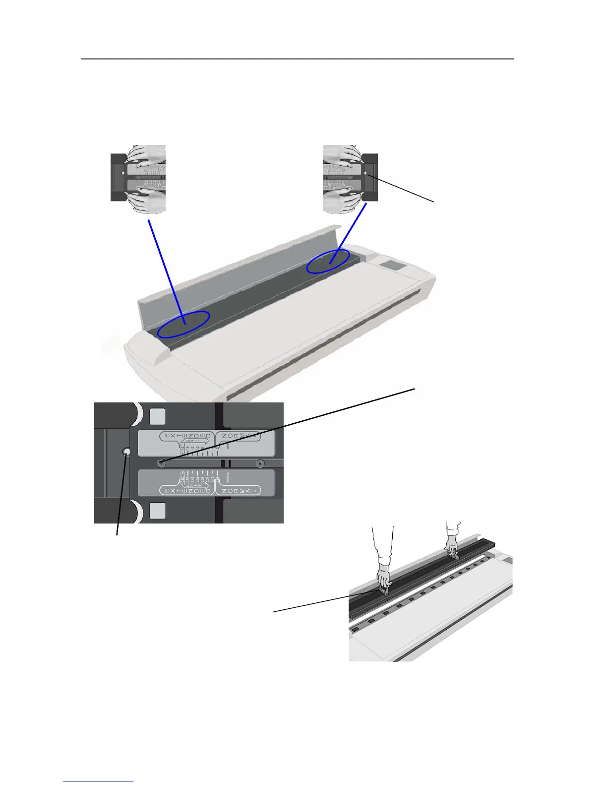 Cleaning – To access the scan area - Move the sliders to the exit position and free the pressure-platen