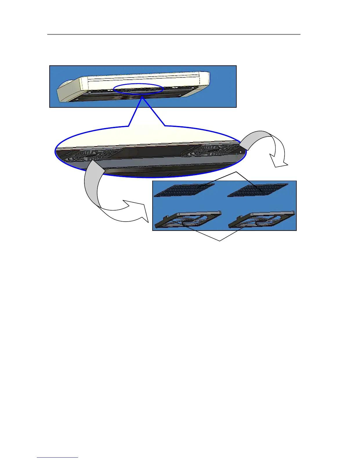 The filter bins on the underside of the scanner. Pull down on a filter bin’s ed