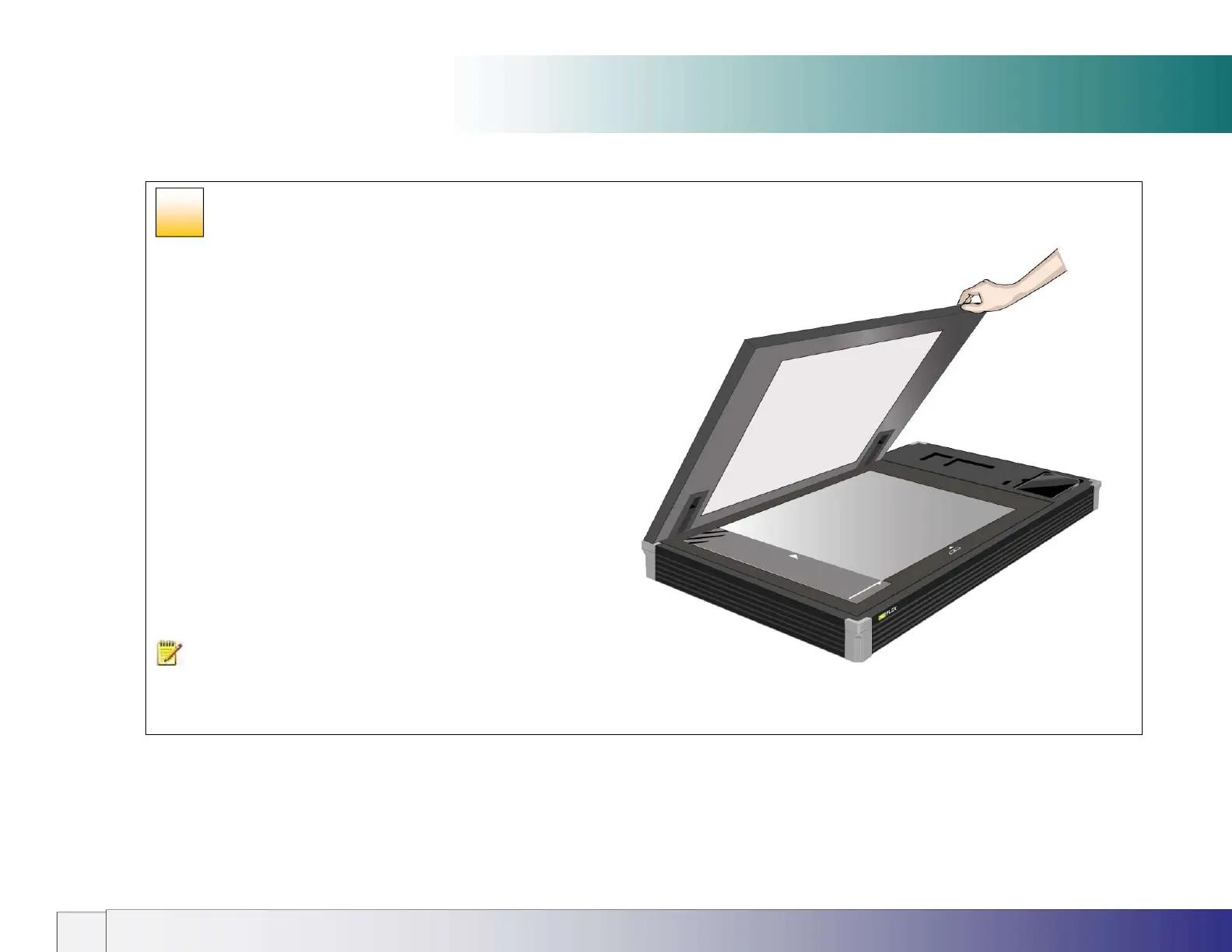 Open the lid of the scanner lid to expose the scan area (glass plate).