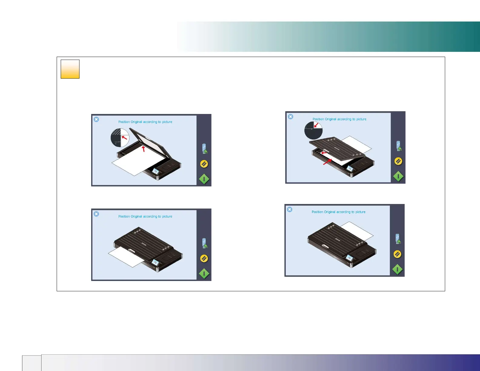 1. Place the long-edge of the document against the guide edge with