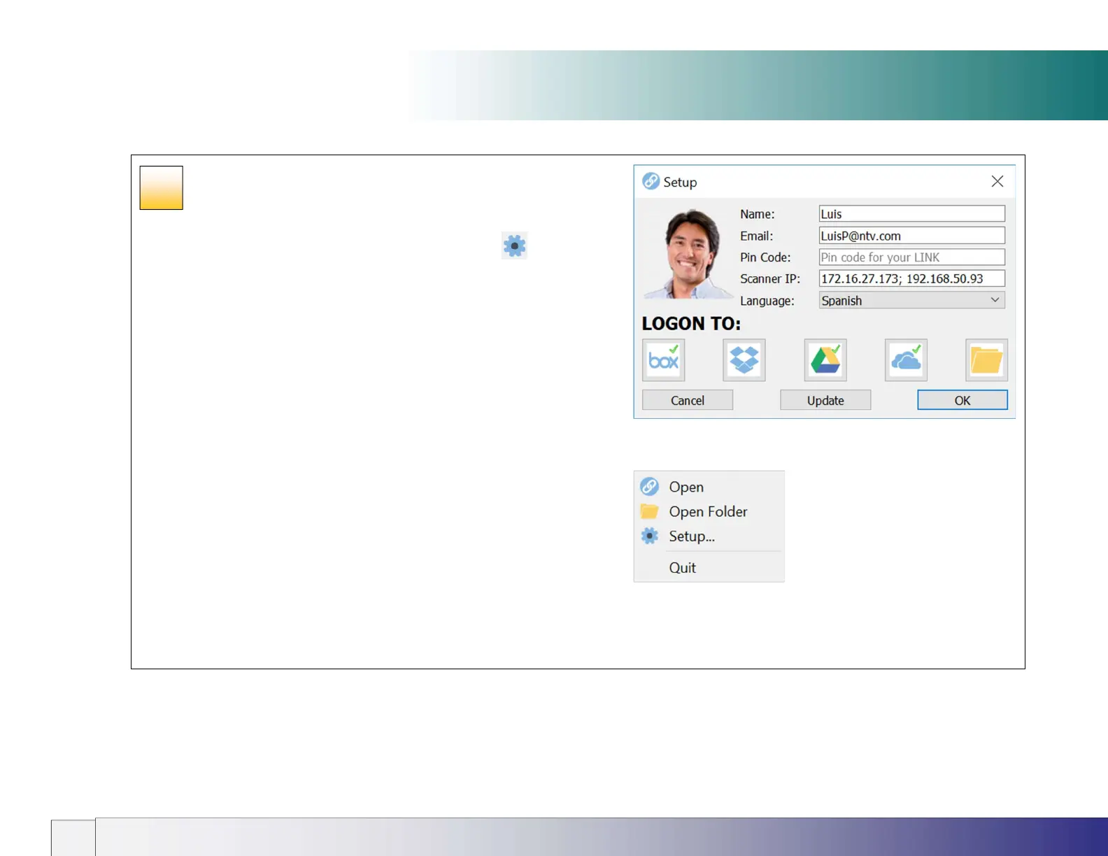 Select a cloud service by pressing its icon e.g. the Dropbox icon.