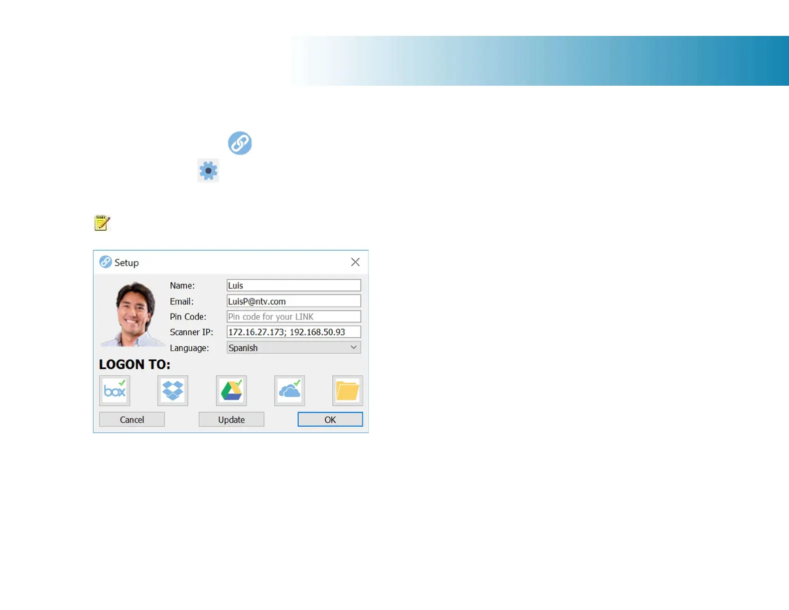Contex LINK scan client software update: Press the Update button.