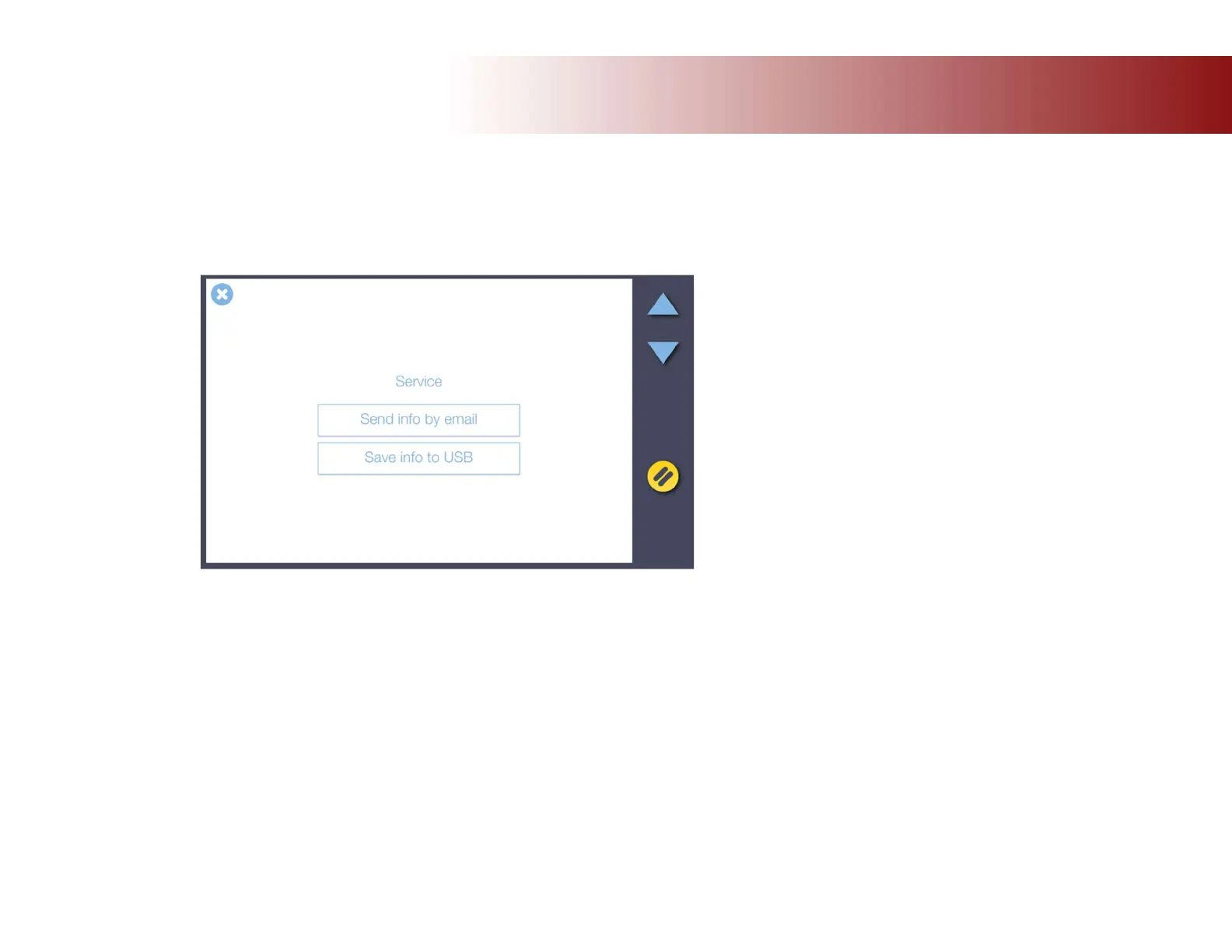 Select Send info by email to send log files to your service provider. This requires that the outgoing email server settings are applied and your