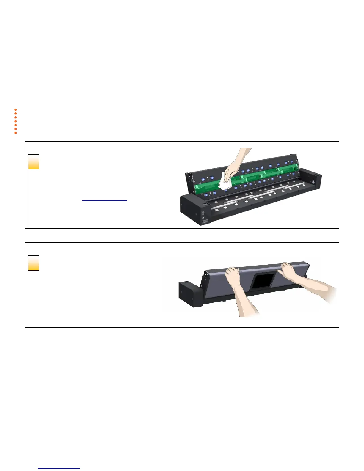 Using a clean, dry, lint-free cloth wipe the internal scan area free of