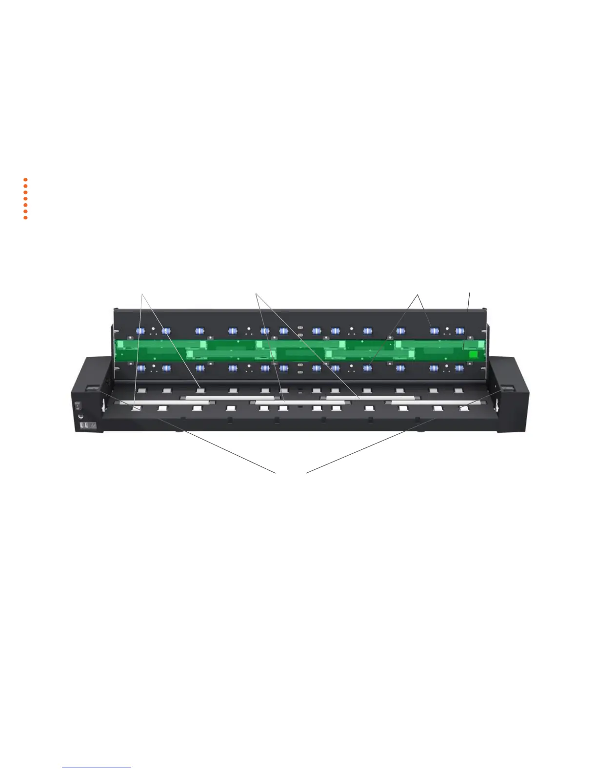 The illustration below shows the scanner from above with its lid open. The illustration indicates the key points (parts and areas) you need to recognize when