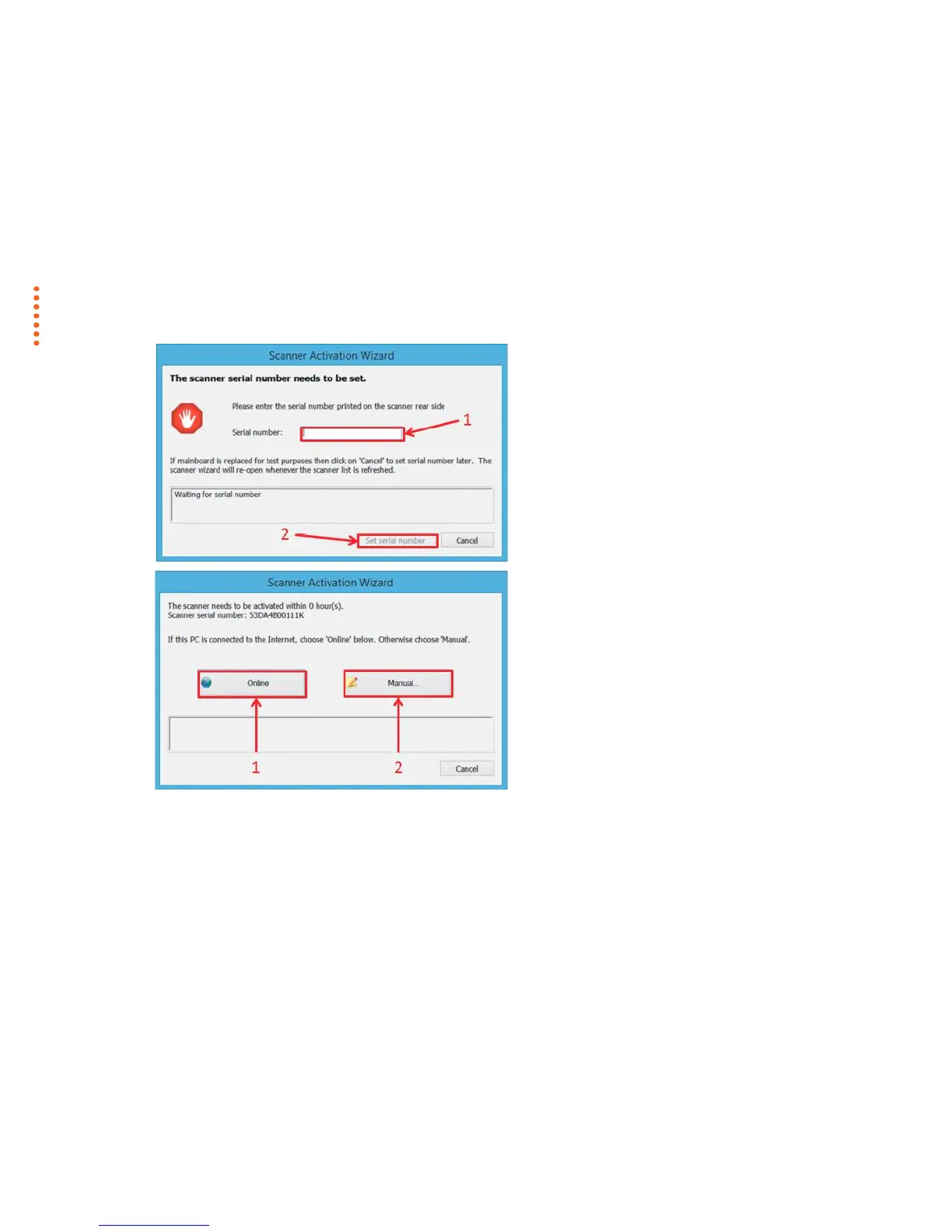 serial no. from the back of the scanner.