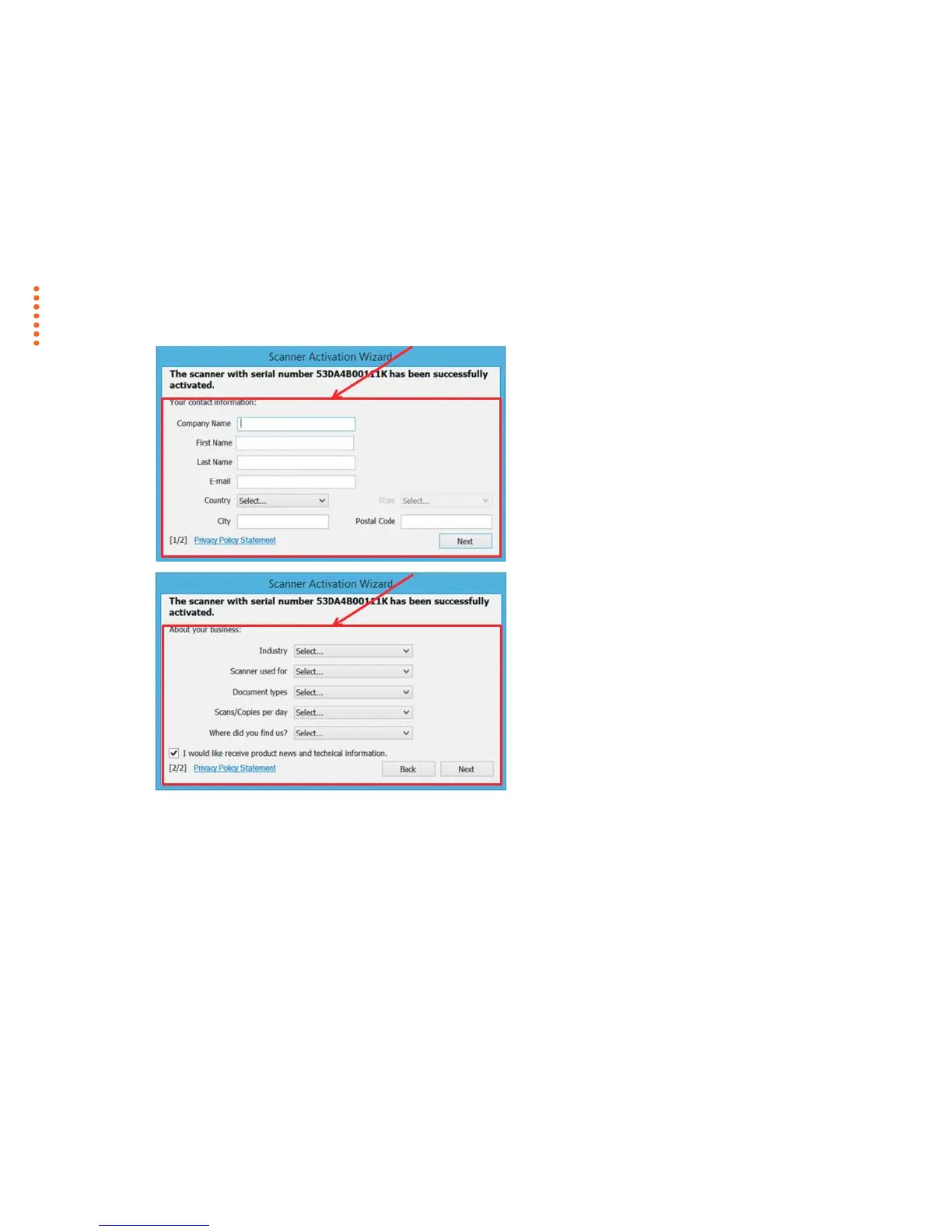 is clicked, the wizard will activate the scanner according to