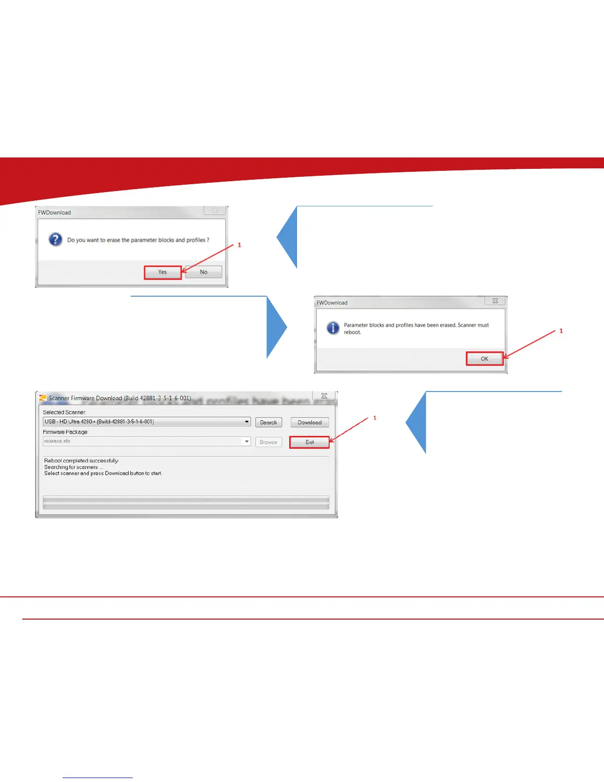1. Click OK to let the scanner reboot.