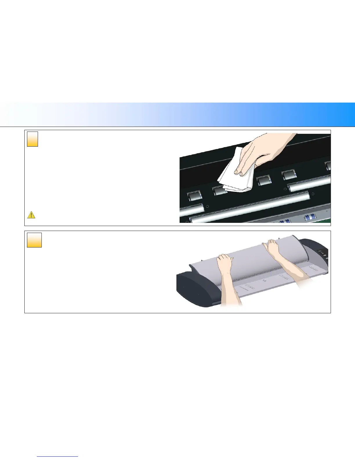 CAUTION: Do not spray/apply cleaner fluids directly to the rollers or