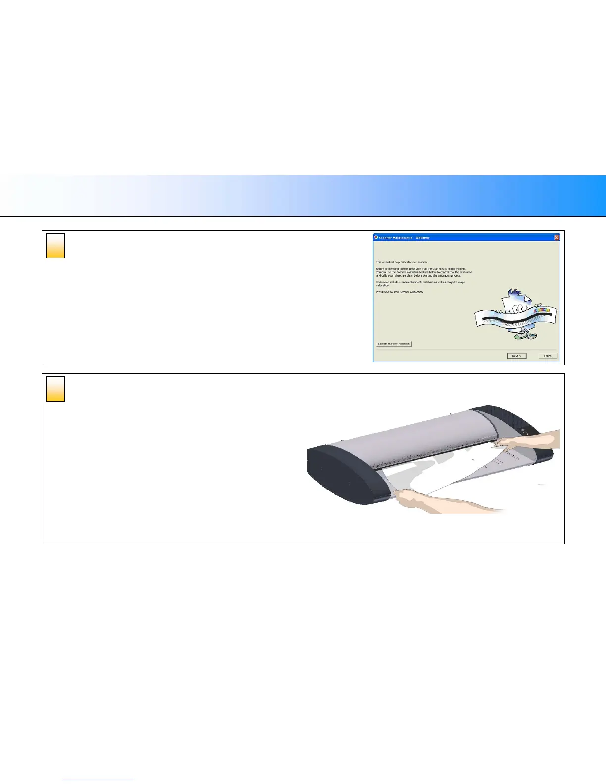 The scanner maintenance wizard will guide you through the calibration
