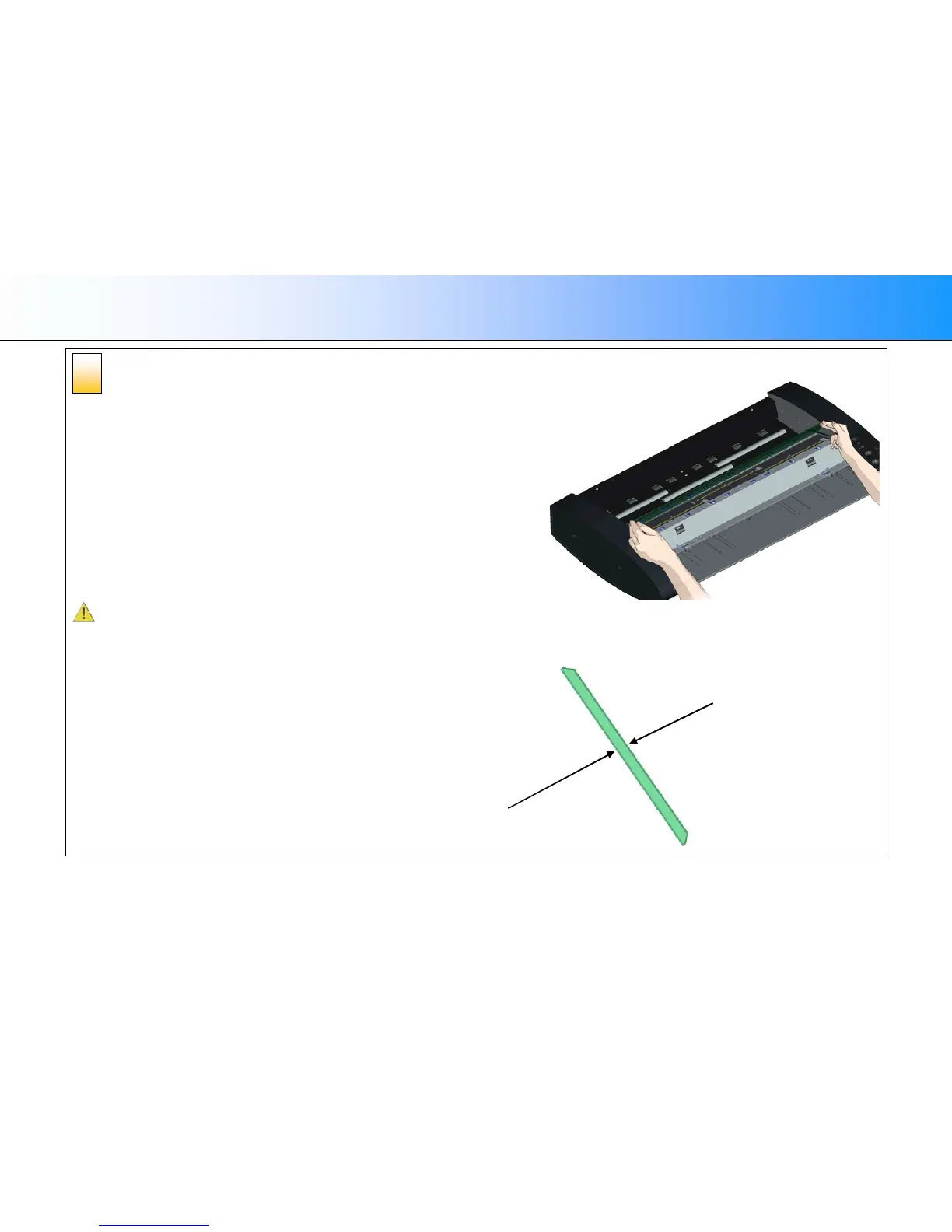 6. Lower the new glass plate into the scanner at an angle, as shown in the glass plate’s