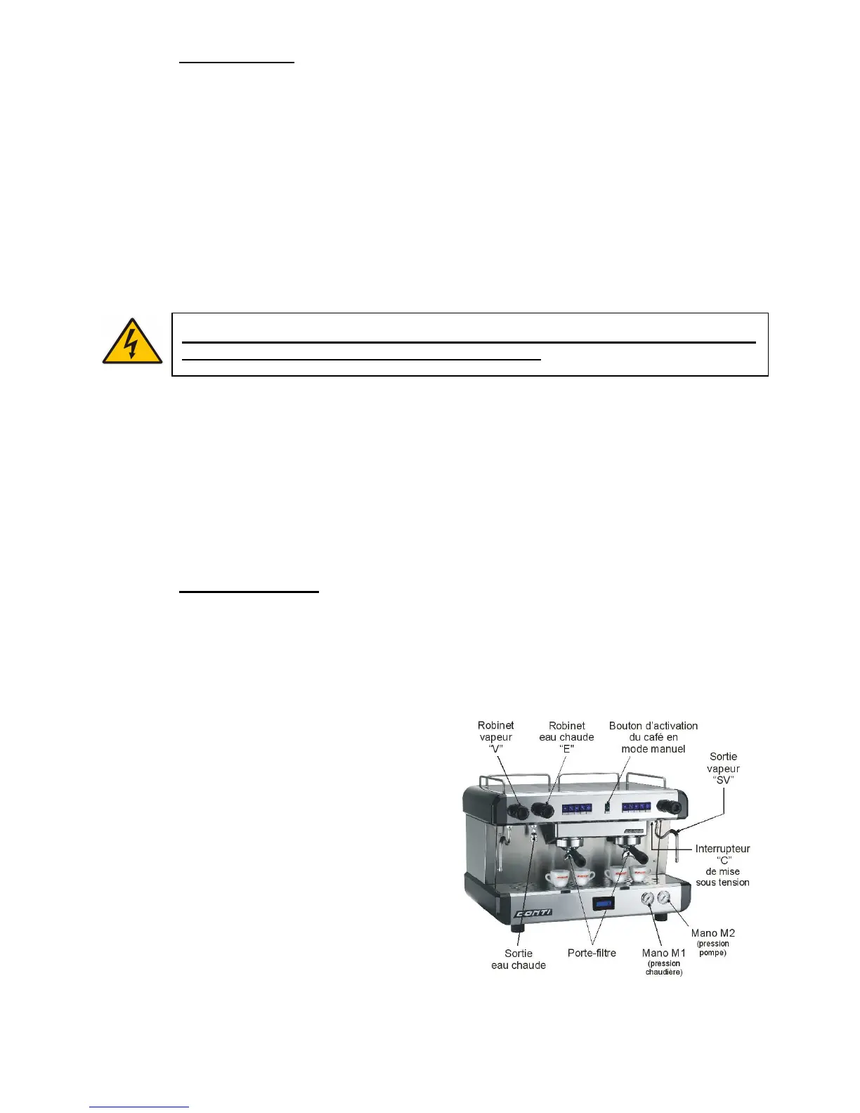 sortie vapeur "SV", (alimentation électrique). Le