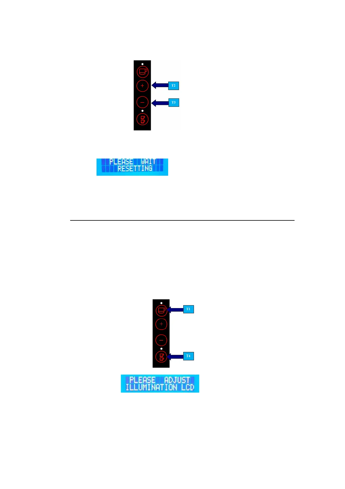 Presser (T2) pour augmenter ou (T3) pour diminuer le contraste du display et des caractères visualisés.