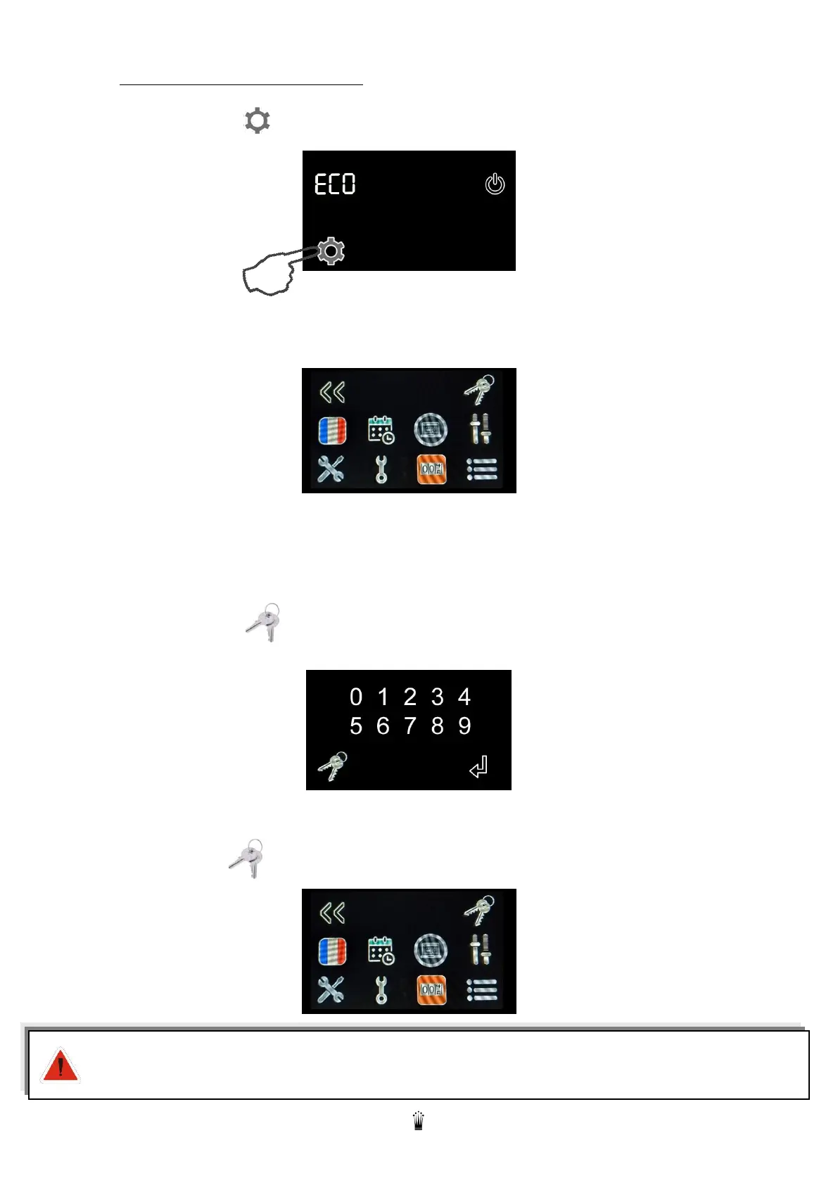 To access the full menu: Enter the password: