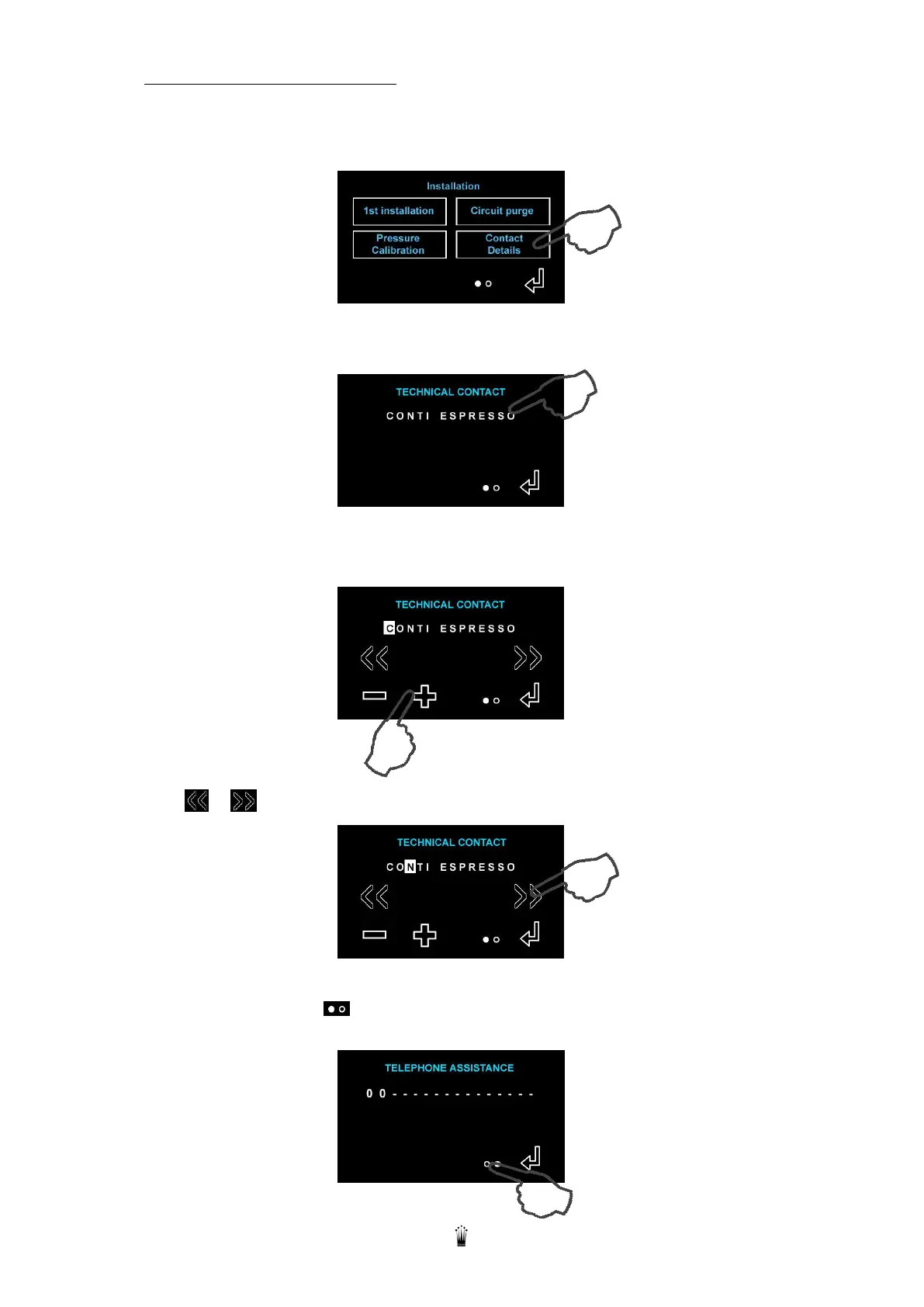 This menu allows you to enter the contact details of the maintenance technician.