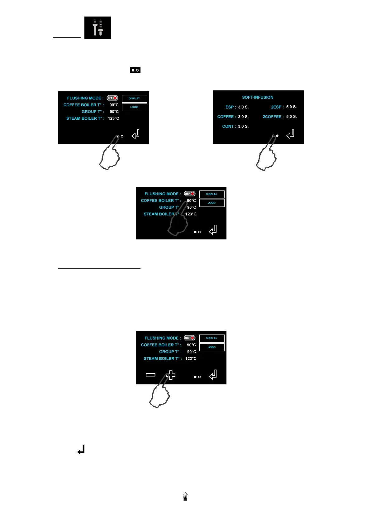 This menu is used to adjust the temperature of the coffee boilers.
