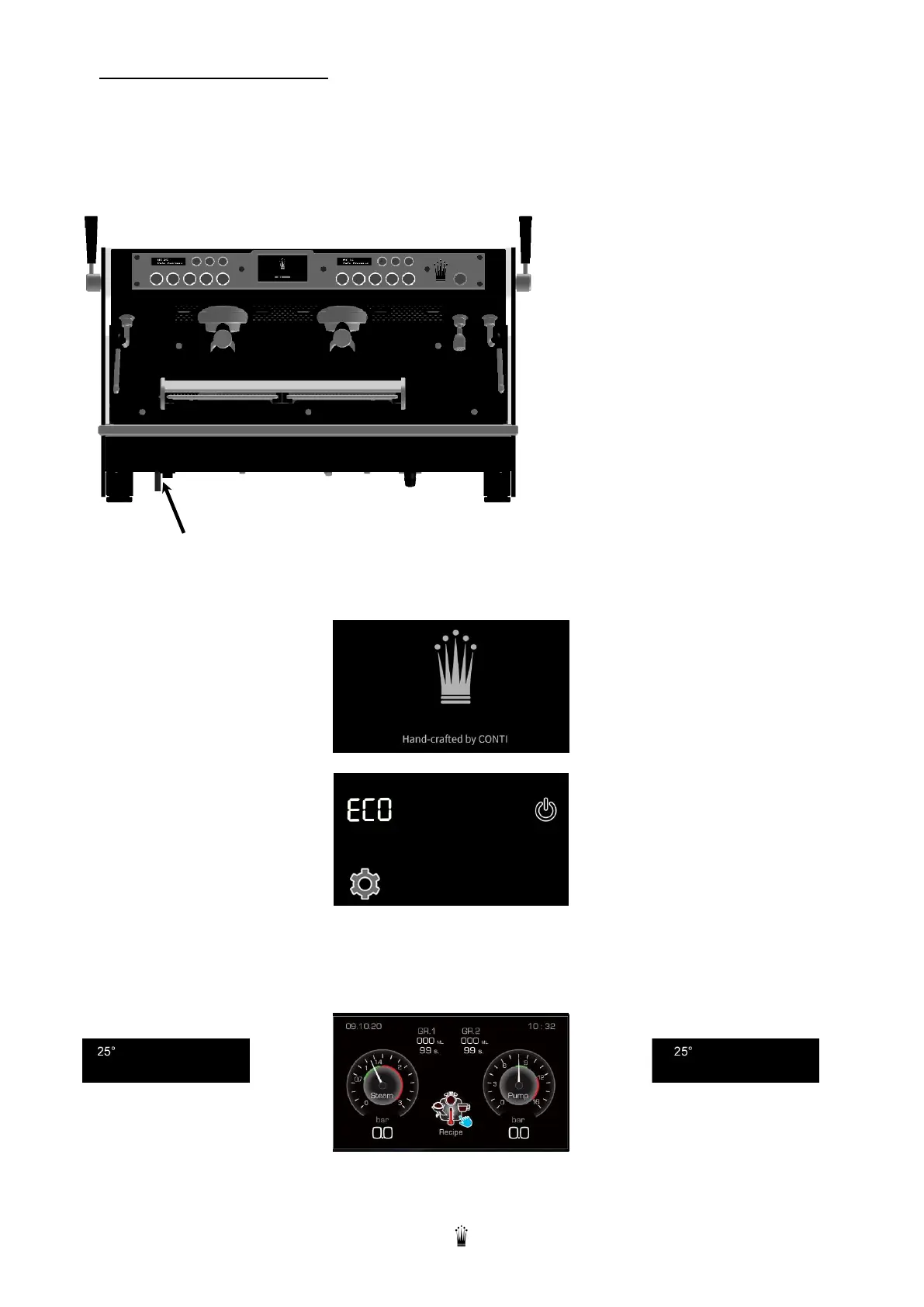C. Switch on the machine using the ON/OFF switch under the drip tray.
