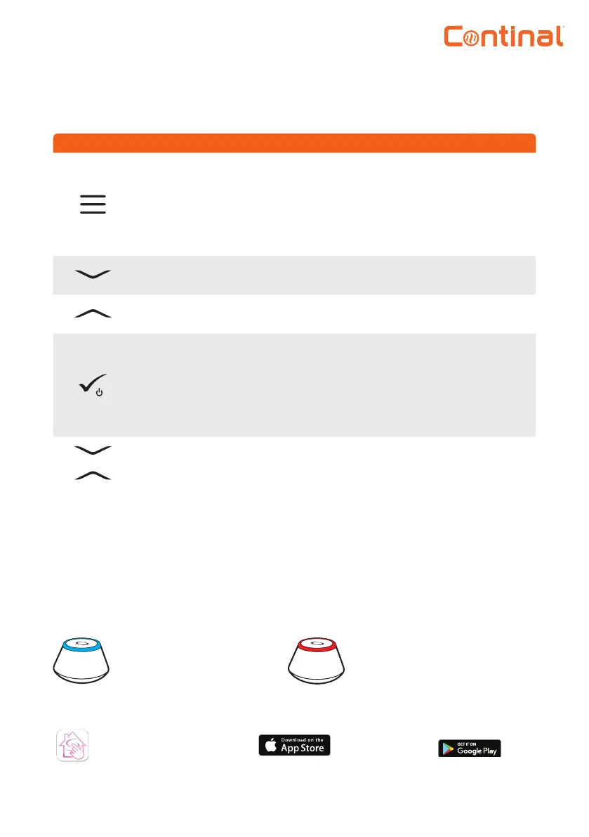 2) In the main screen: press and hold for 3 seconds to change the thermostat