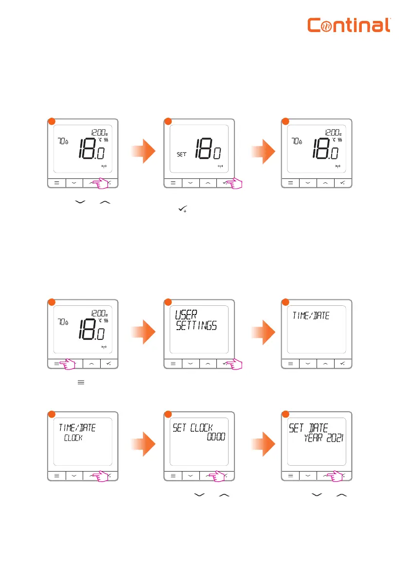 Continal 39003-tsrf - 8. Operating in offline mode; Setting temperature change (manual mode); Setting time; date