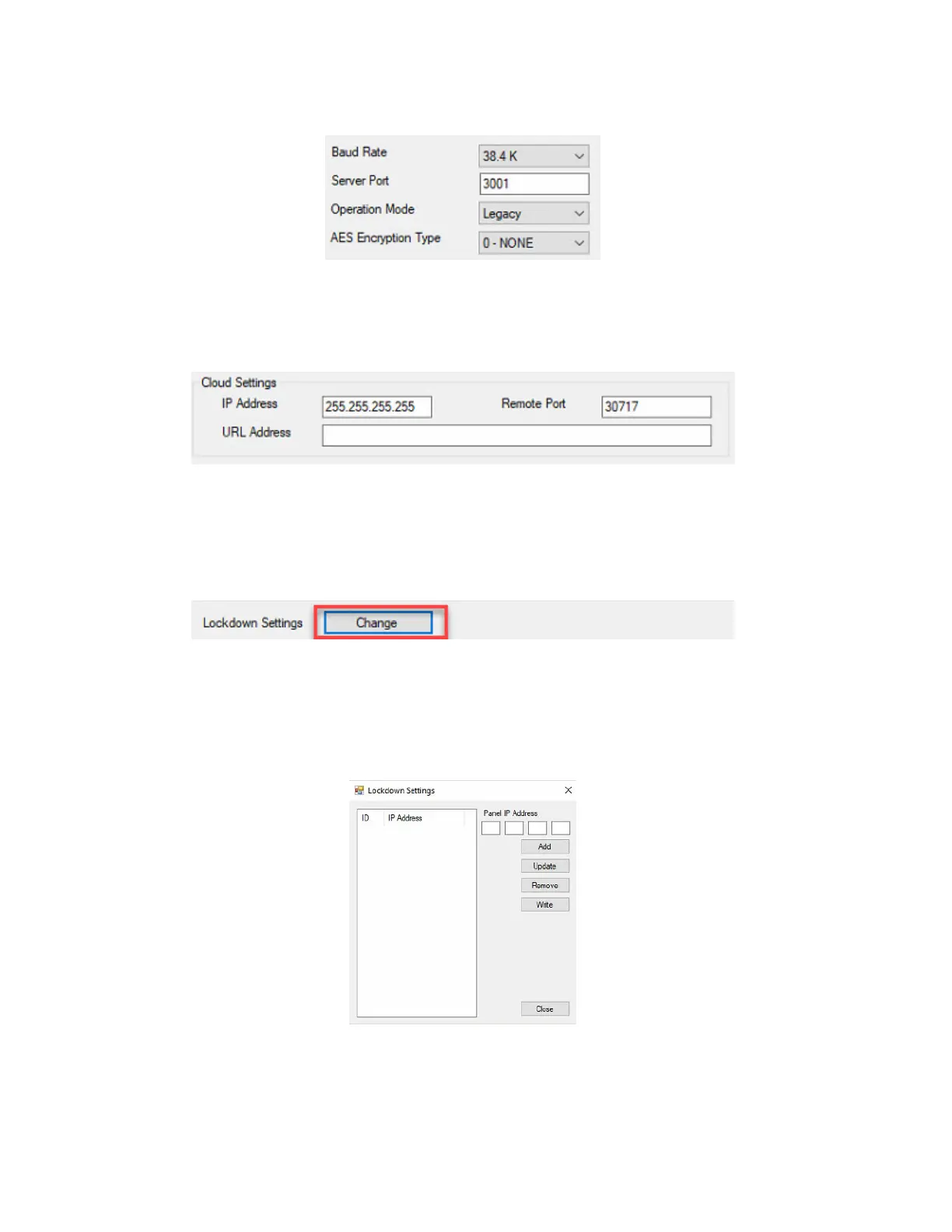 30. Upon clicking Change, the Lockdown Settings configuration screen will display. This only needs to be