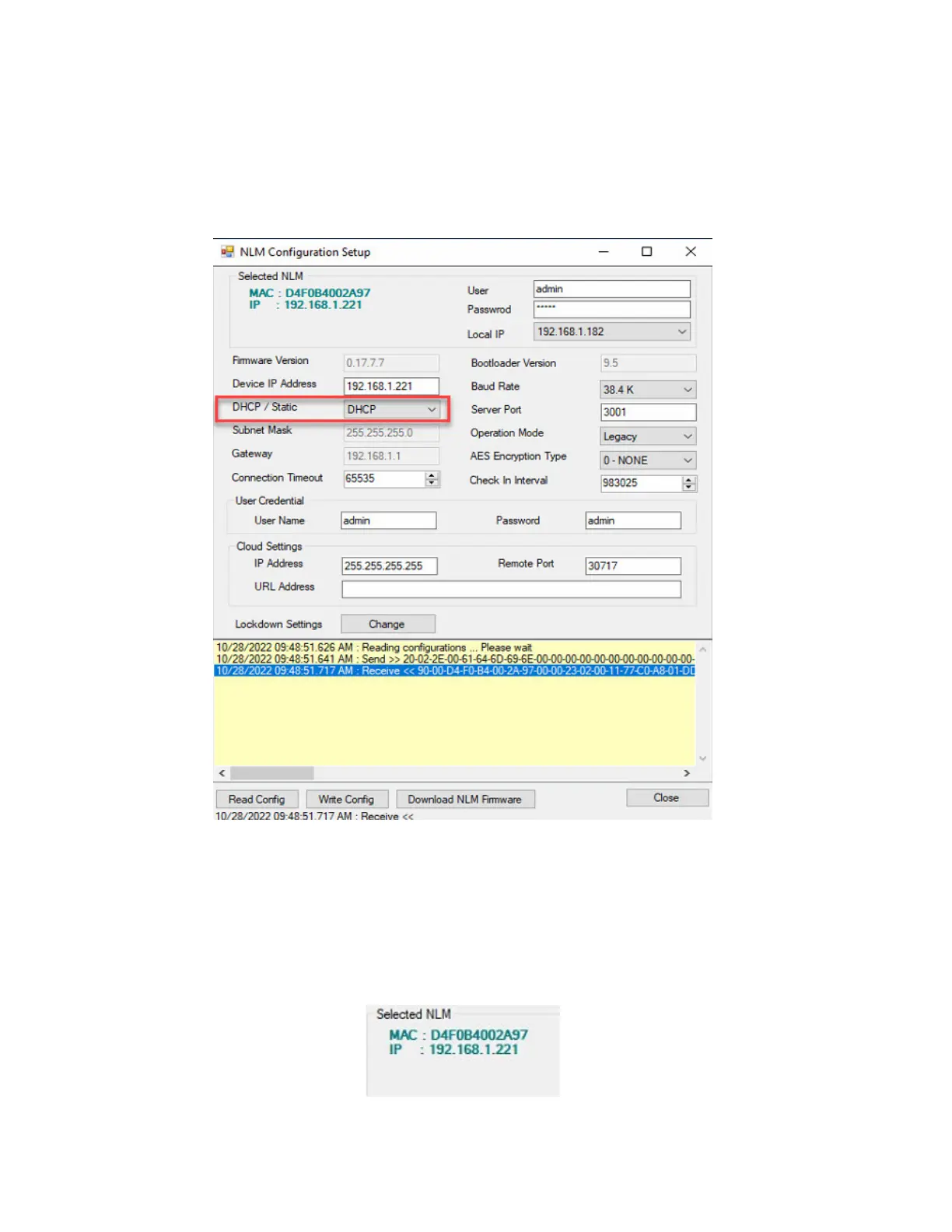 8. On the NLM Configuration Setup page, view the Selected NLM information. The MAC Address should