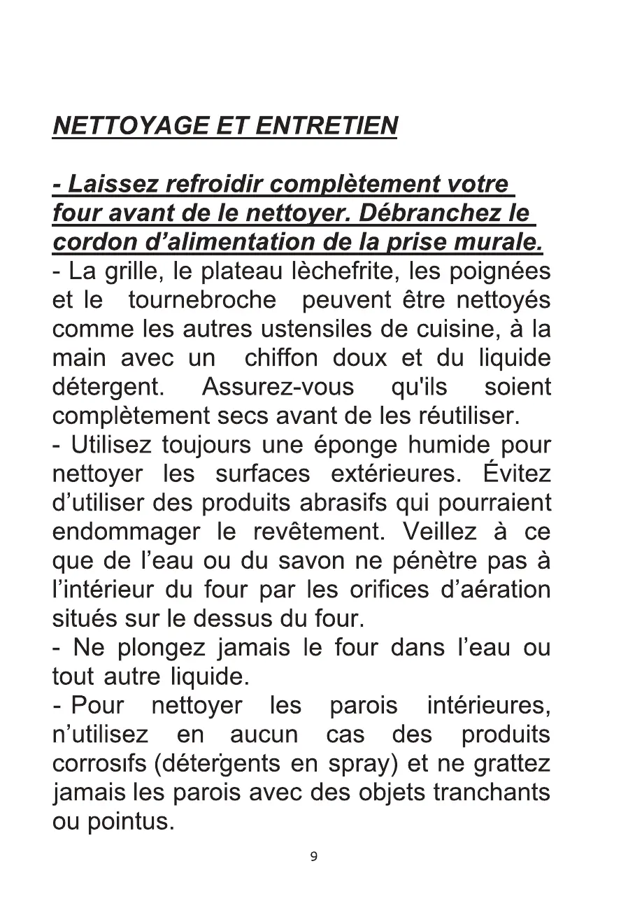 CONTINENTAL EDISON CEMF23B - NETTOYAGE ET ENTRETIEN