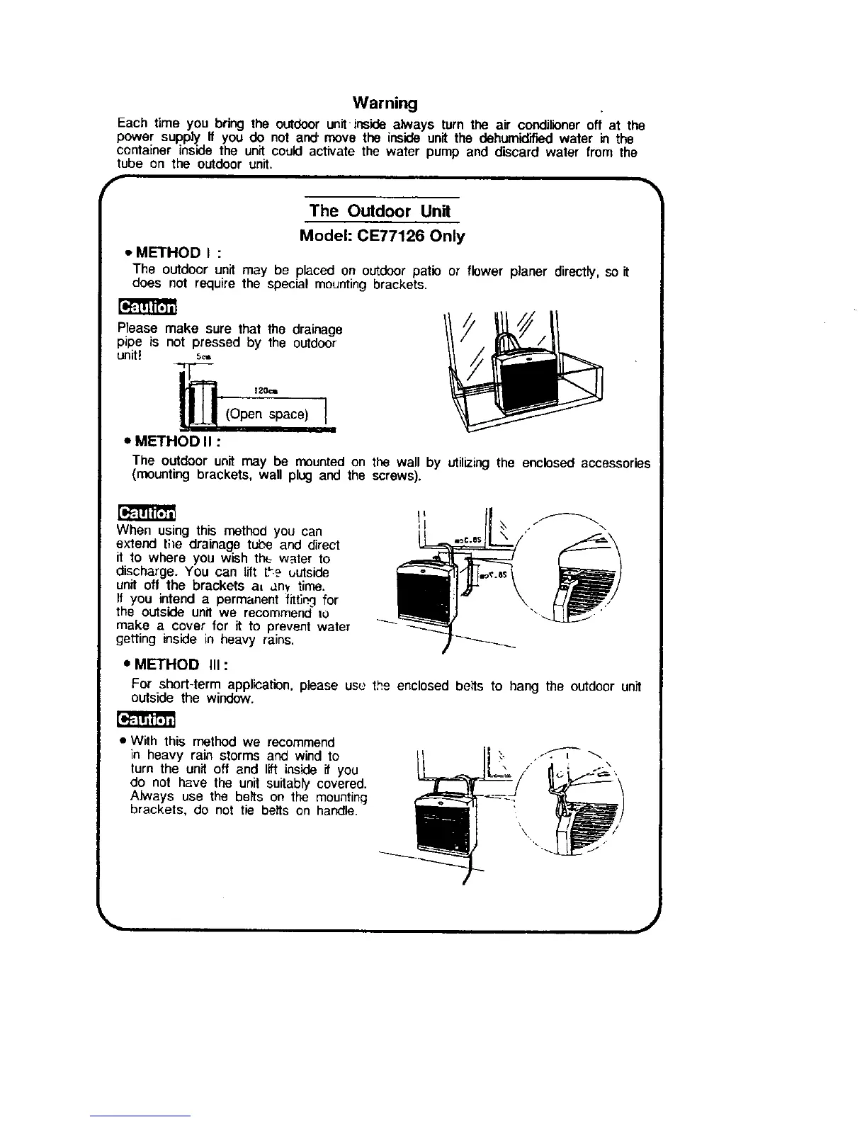 For short-term application, please use the enclosed belts to hang the outdoor unit