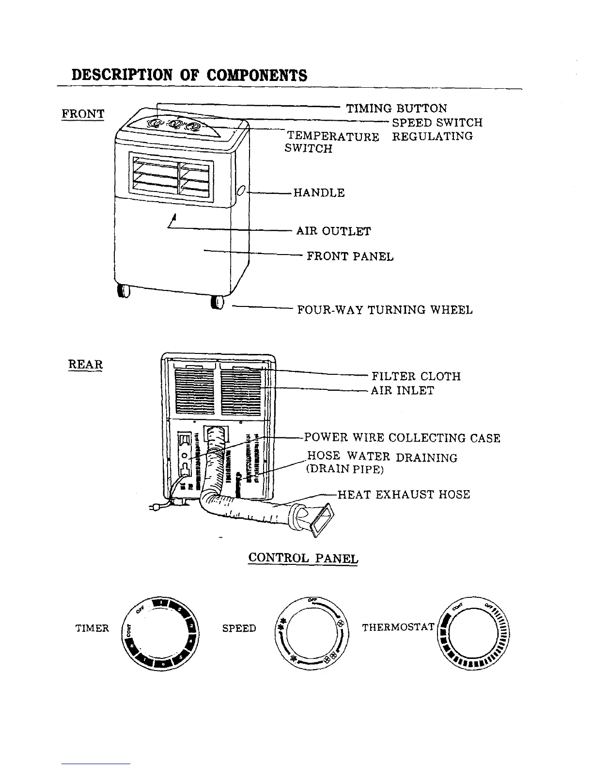 Continental Electric CE73096 - Component Descriptions; Front, Rear, and Control Panel Components
