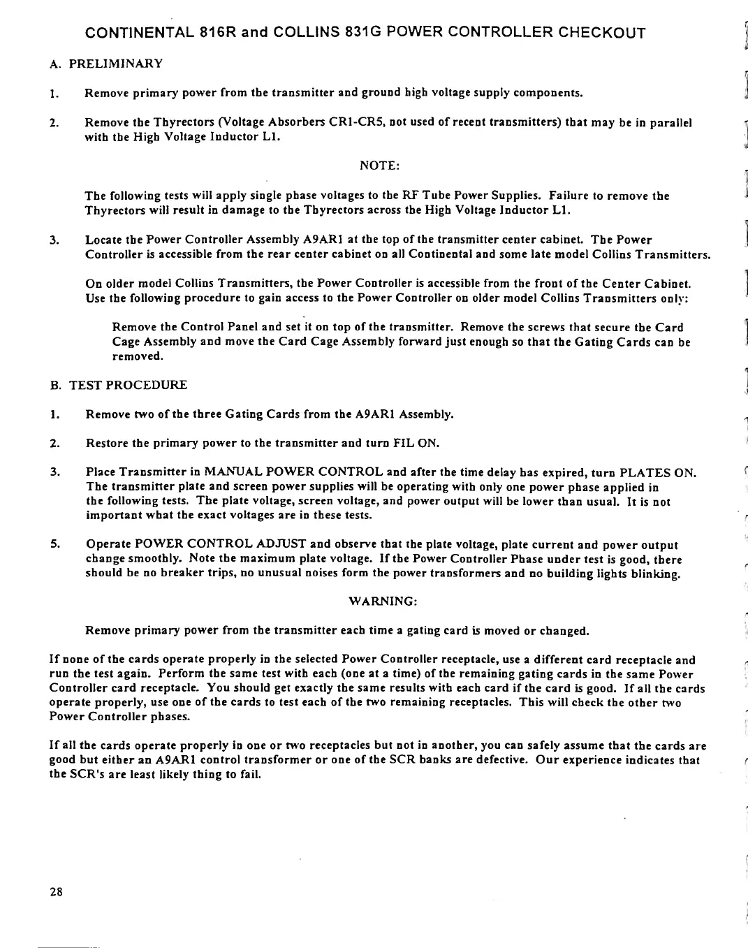 Continental Electronics 816R - Power Controller Checkout Procedure