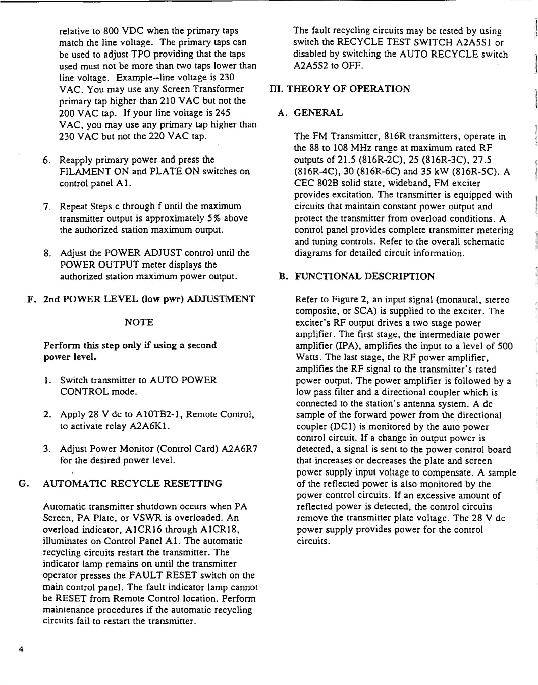 Continental Electronics 816R - Automatic Recycle Resetting; Theory of Operation; General Theory; Functional Description