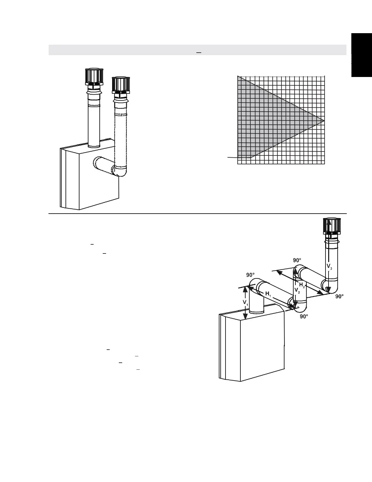 See graph to determine the required vertical rise V