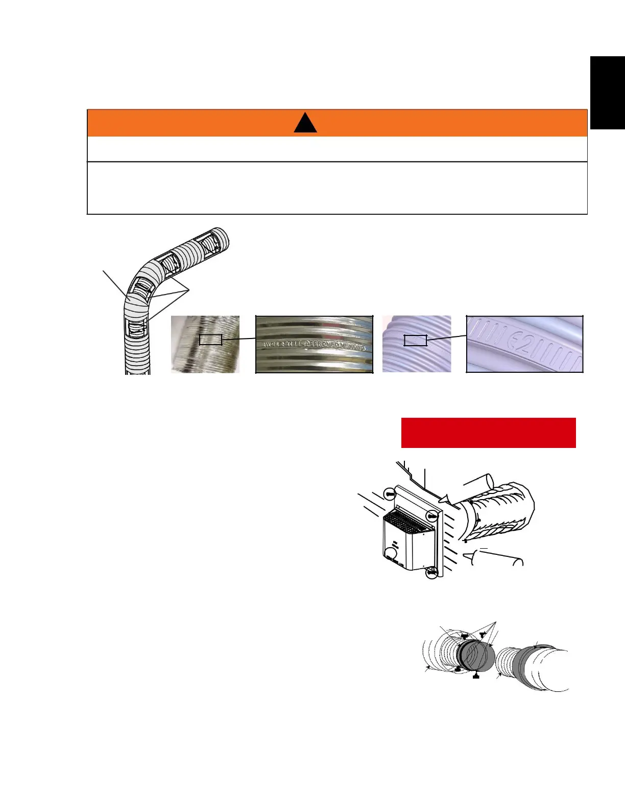 Use only approved flexible vent pipe kits mark ed: