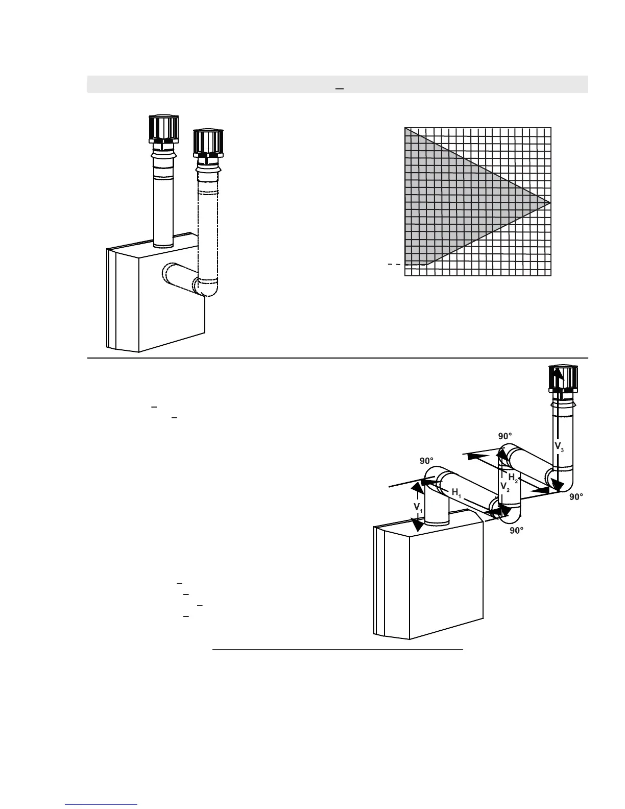 For vent configurations requiring one or more 90° elbows (top exit) or one or more 90° elbows (rear