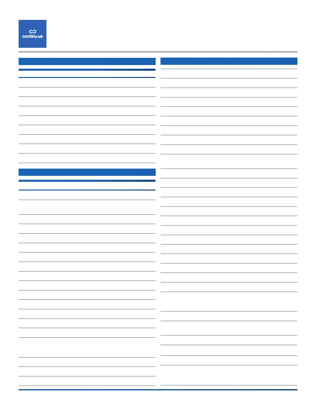 5935 W. 84TH STREET • INDIANAPOLIS, INDIANA 46278 • (855) 423-2181 • WWW.CONTINU.US © 2022 CONTINU•US ALL RIGHTS RESERVED