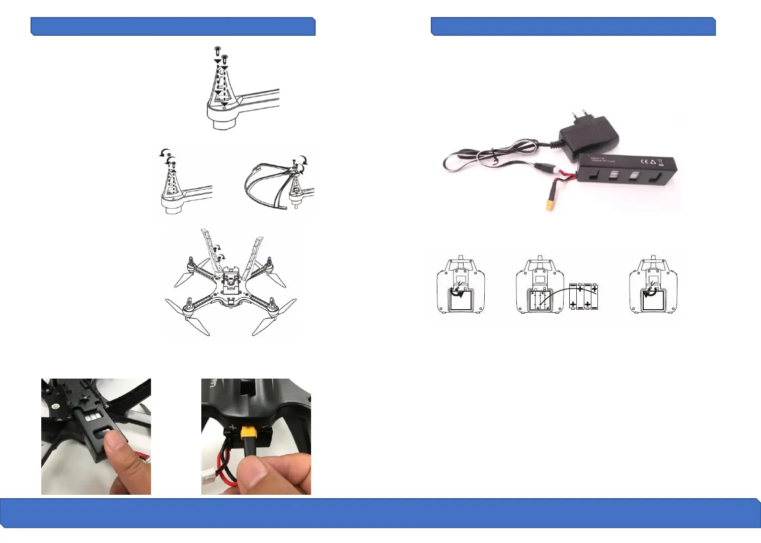 battery in and then plug the power cable into the drone to power on