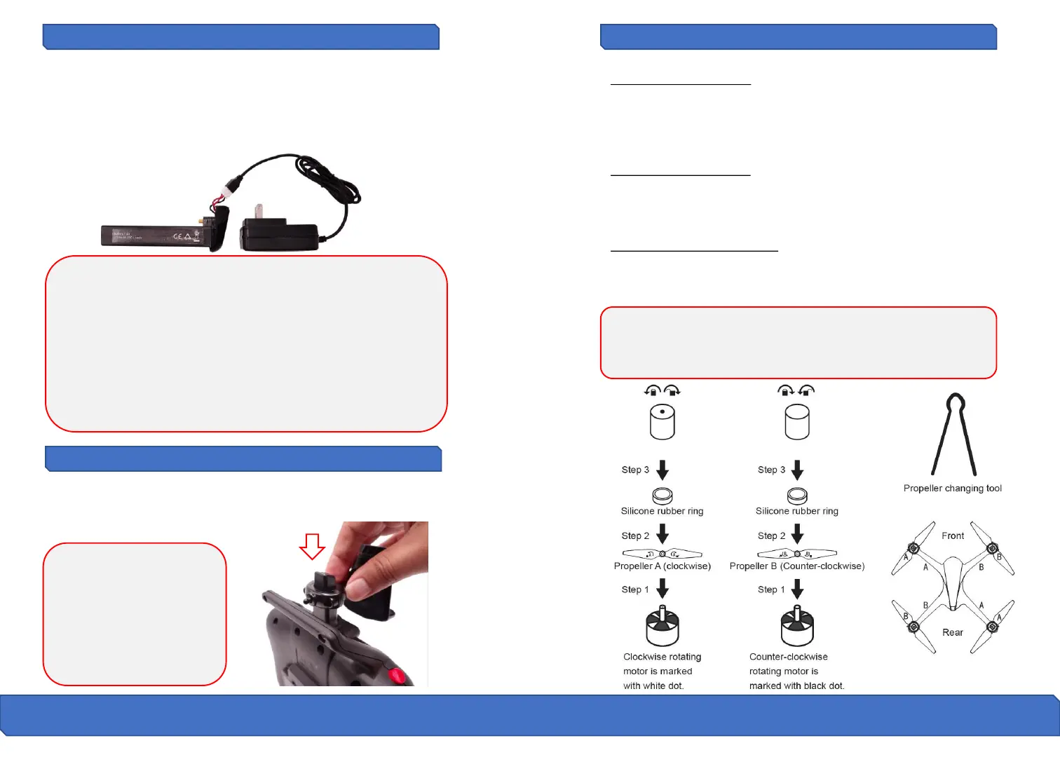 Put the propeller with marking ‘B’ into the clockwise rotating motor shaft