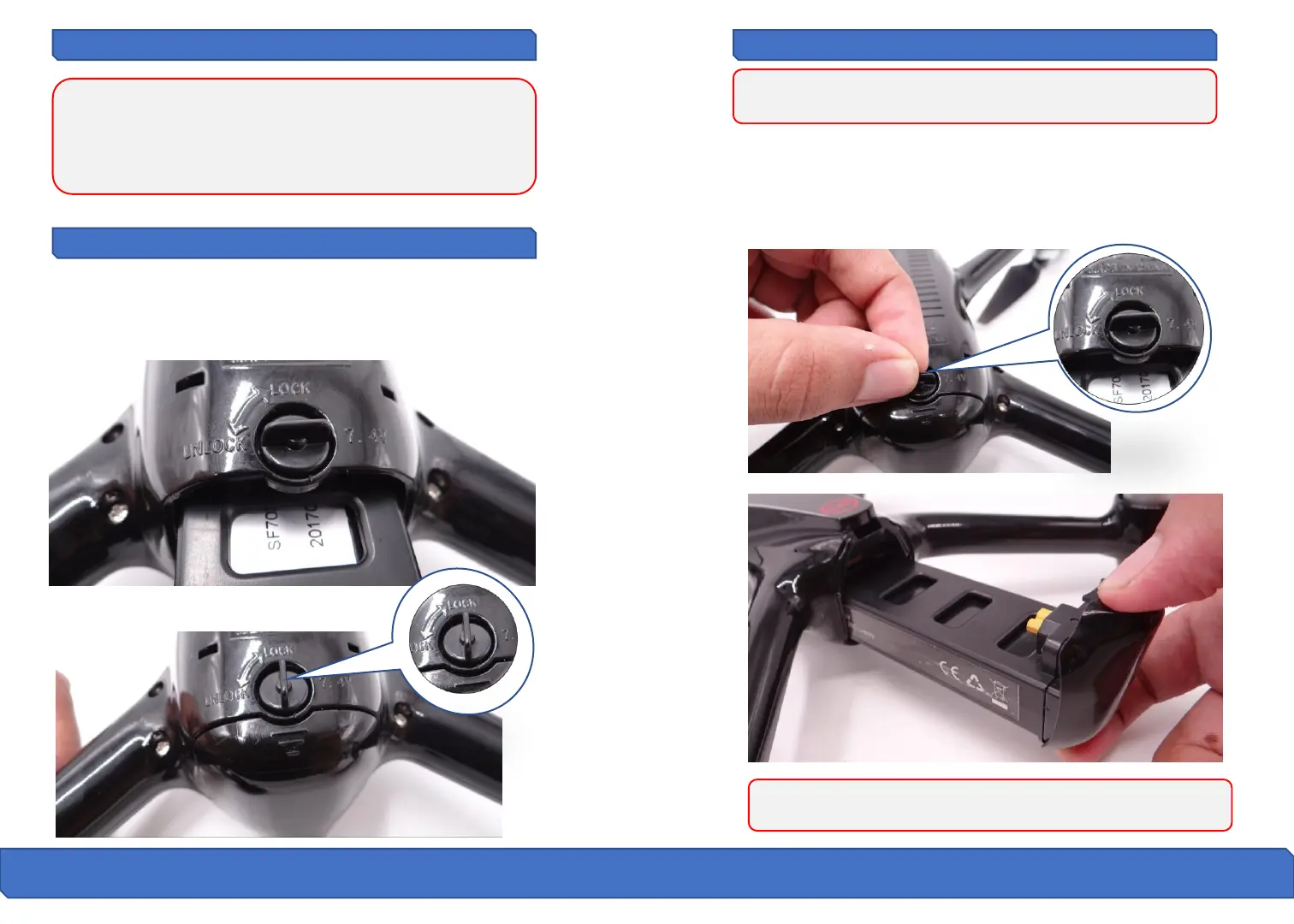 located on the bottom of the drone and turn it 90 degrees to the “LOCK”