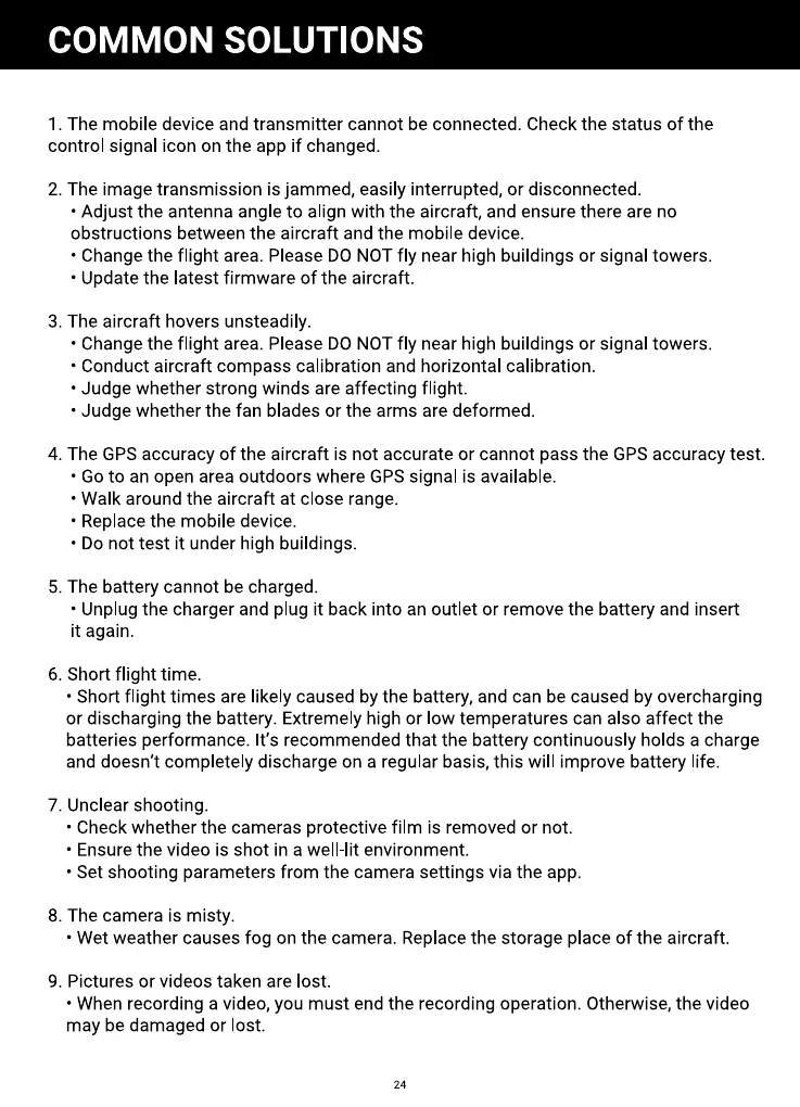 • Change the flight area. Please DO NOT fly near high buildings or signal towers.