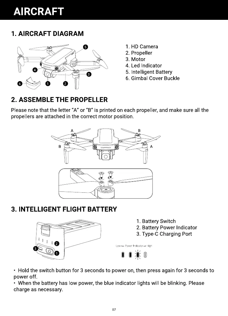 Please note that the letter "A" or "B" is printed on each propeller, and make sure all the