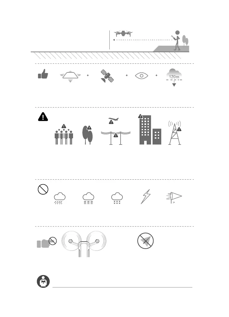Avoid ying over or near obstacles, crowds, high-voltage power lines, trees,