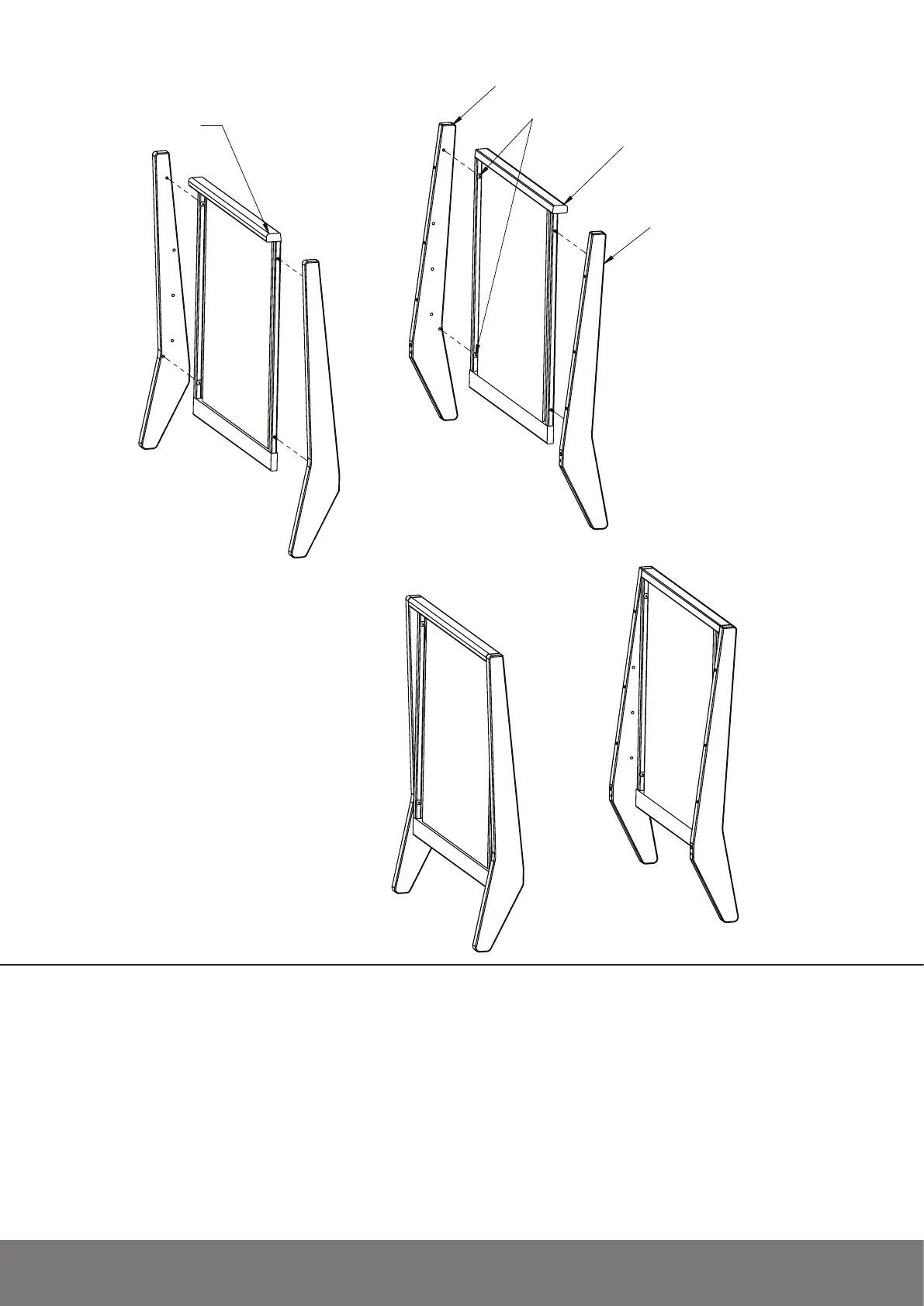 A. Alinee la pata izquierda (B) y la pata derecha (C) con el extremo (D), asegurándose de que el extremo (D)