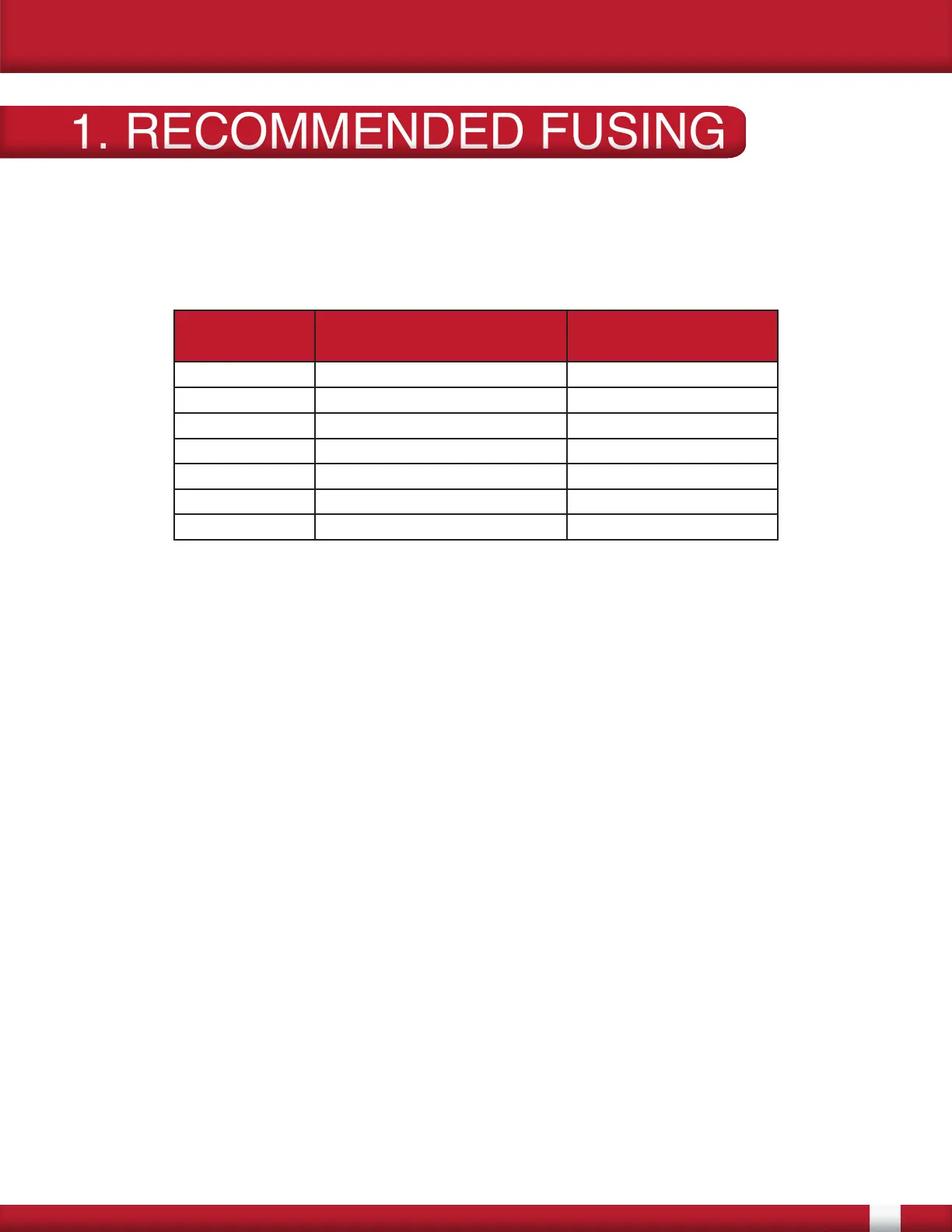 1. RECOMMENDED FUSING1. RECOMMENDED FUSING
