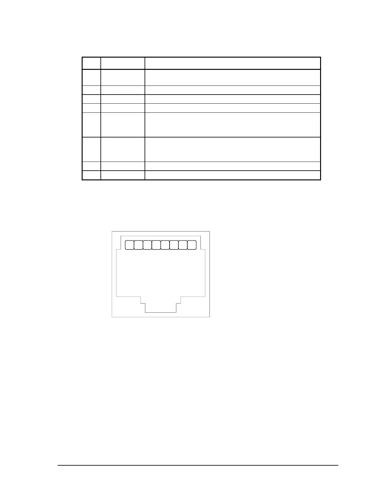 The following table provides a description of the function of each pin of the RJ-45 connector.