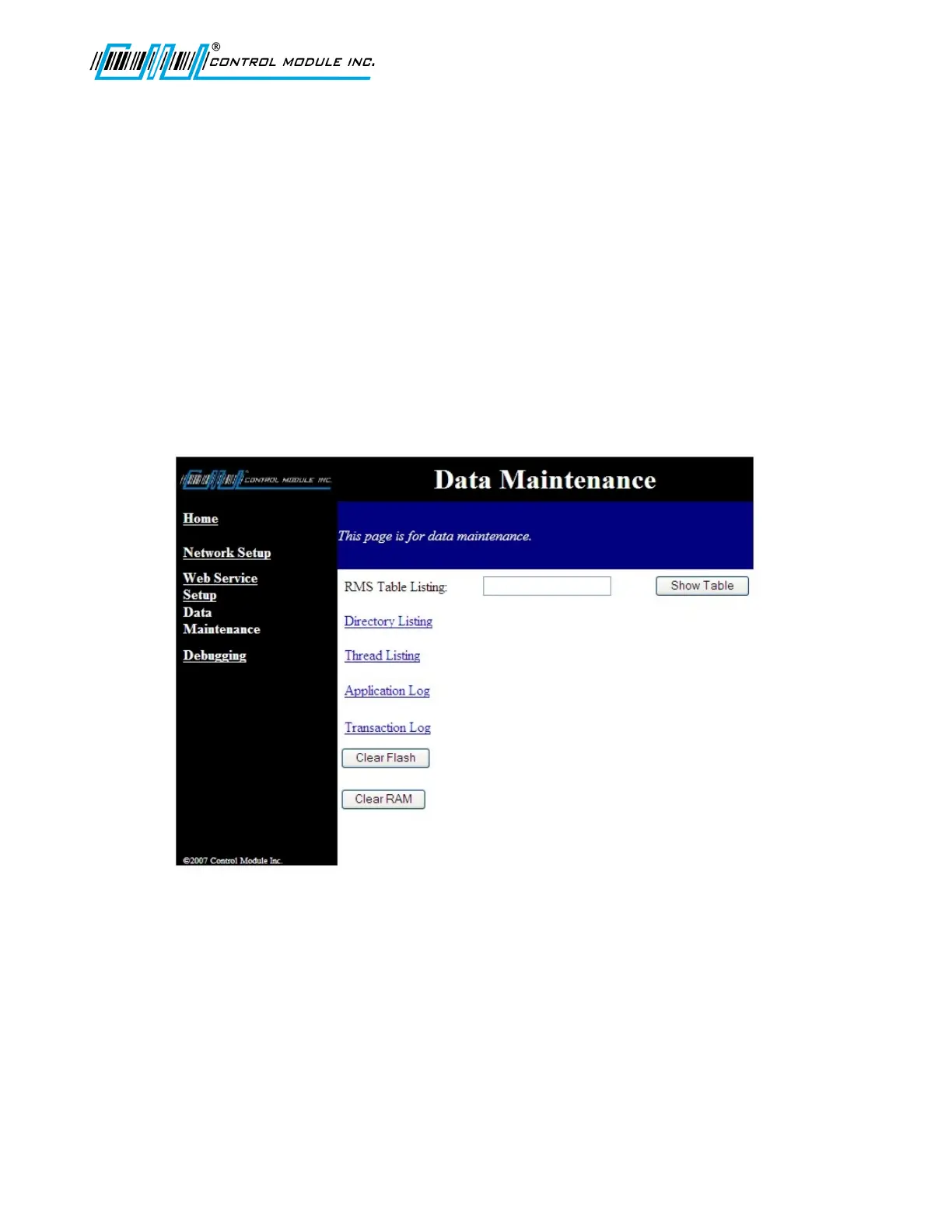 The RMS Table Listing is located on the ‘\flashdisk’ and provides access to data tables that
